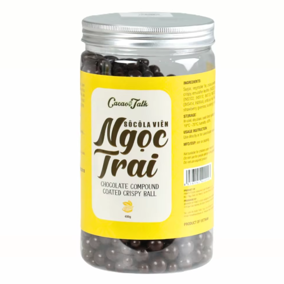 Contenido:Dark Chocolate Coated Crispy Balls