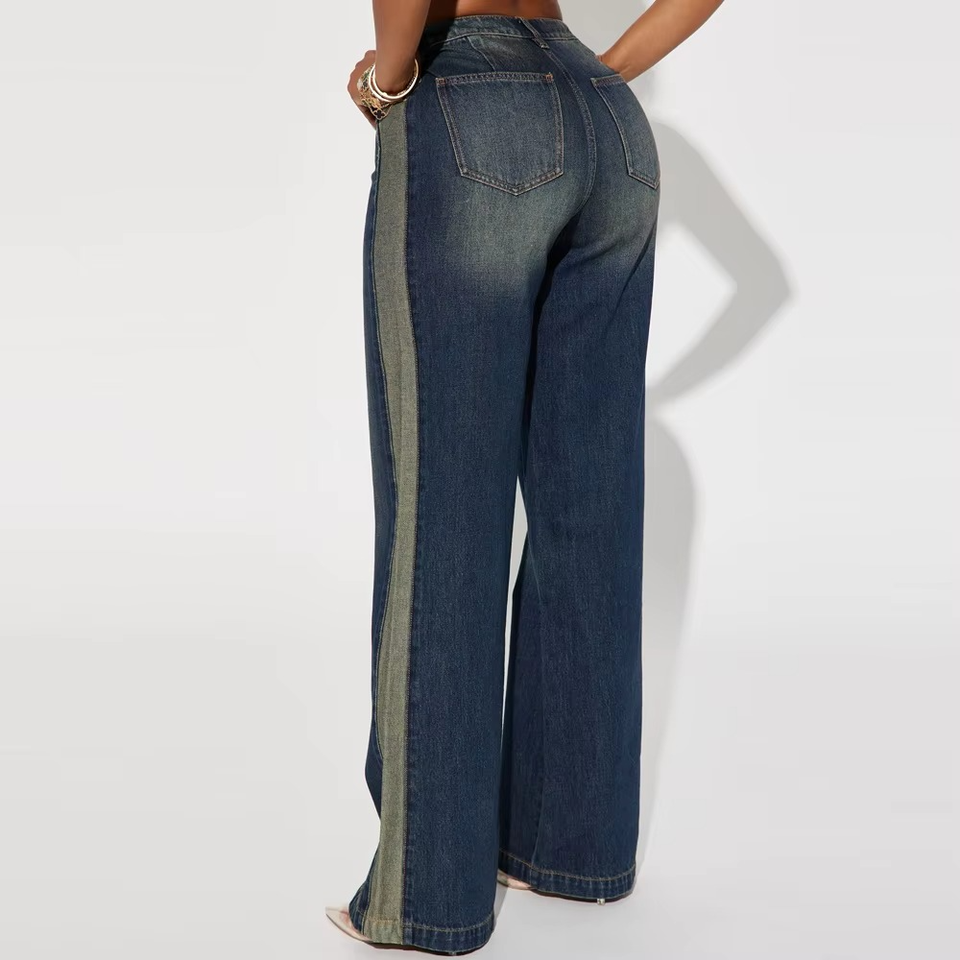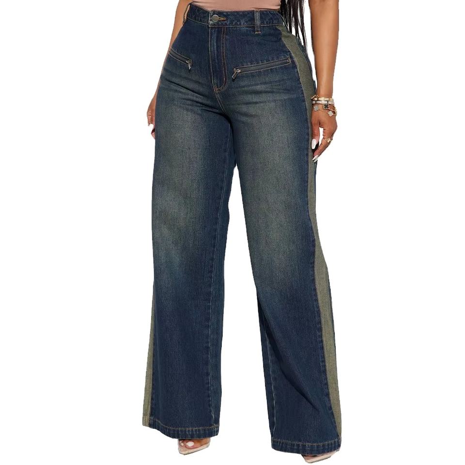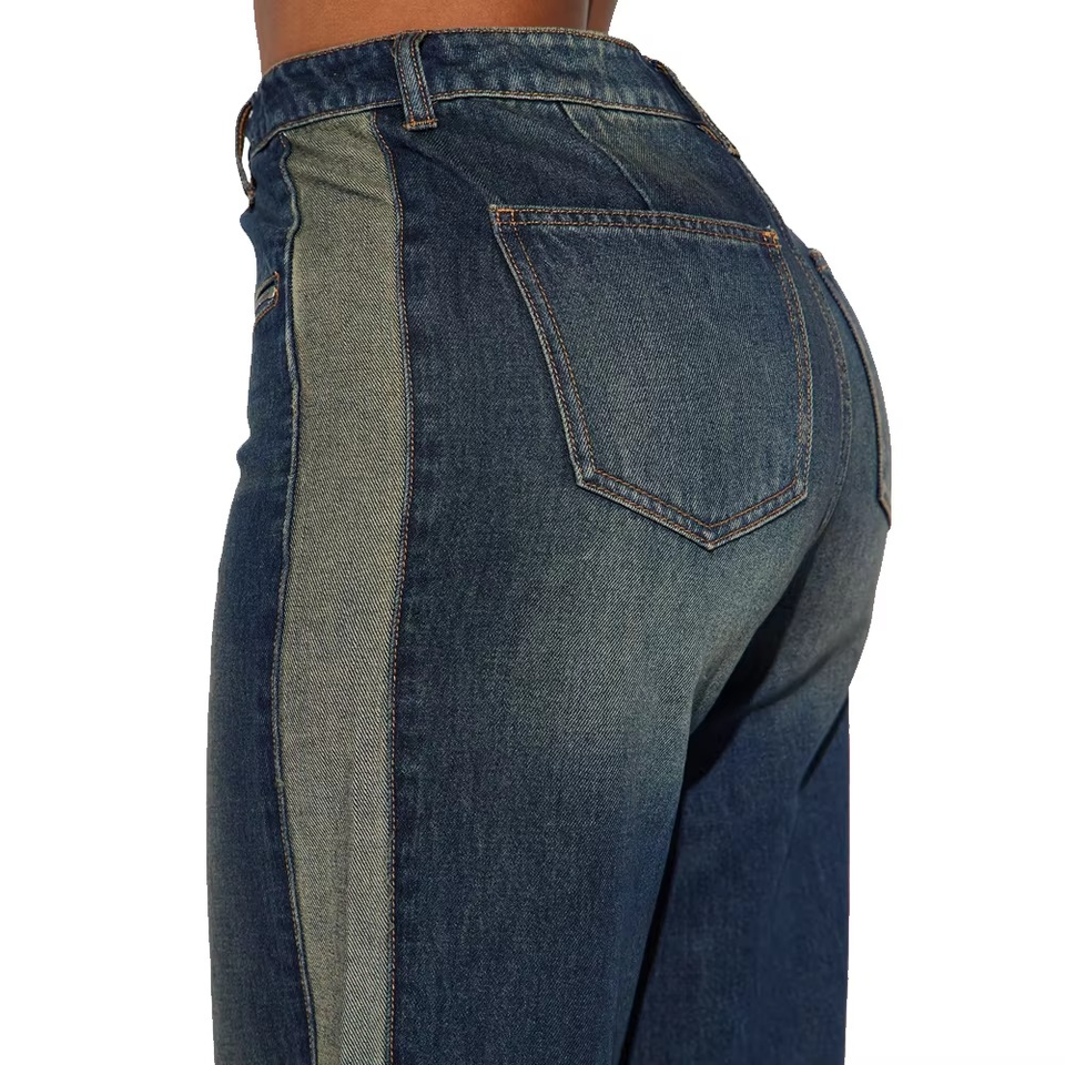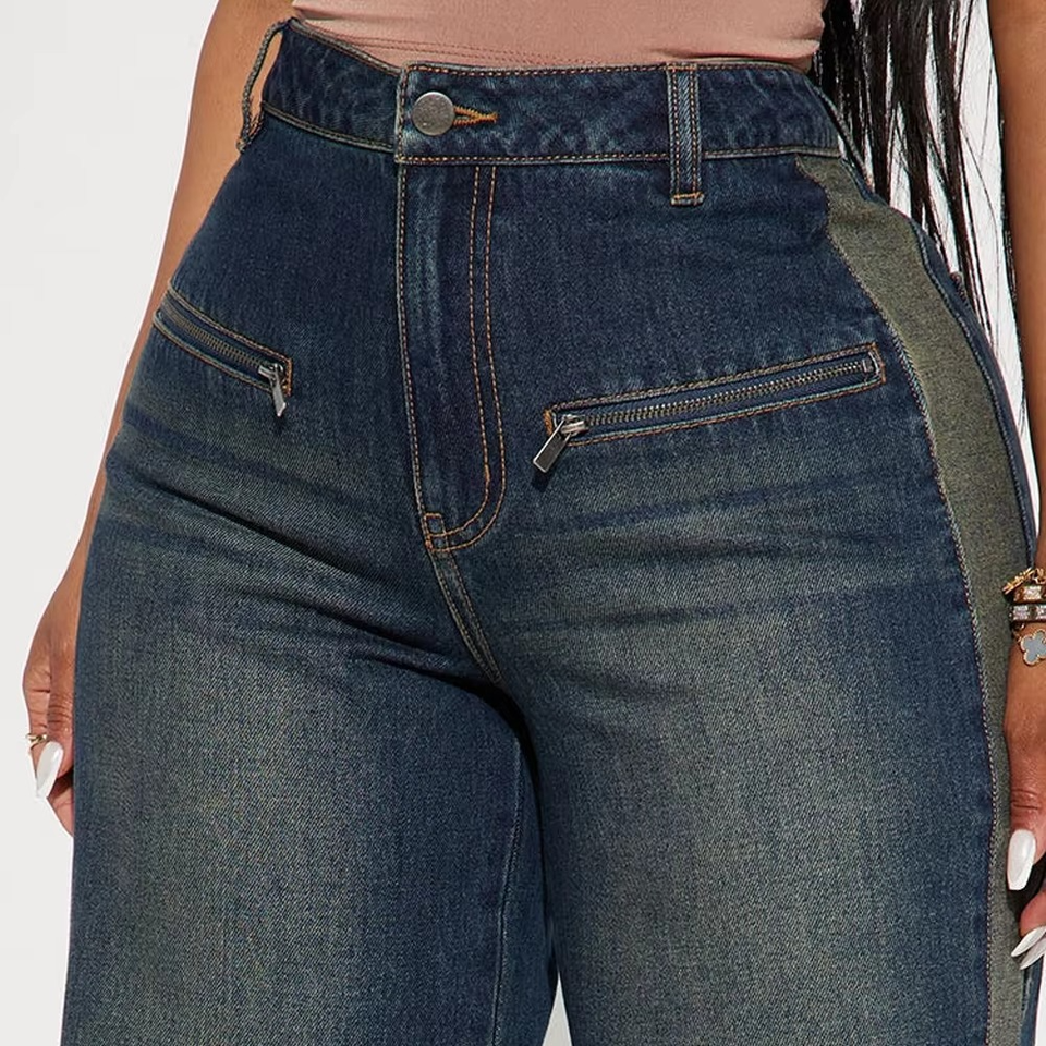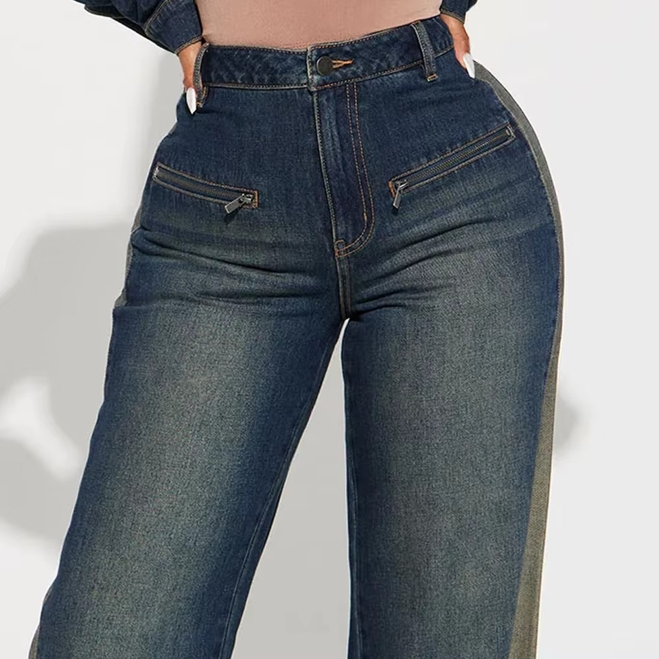 Pantalones vaqueros de mezclilla con bolsillos y cremallera de bloque de lavado oscuro de alta calidad para mujer, ropa de calle, pantalones deportivos de pierna recta para invierno