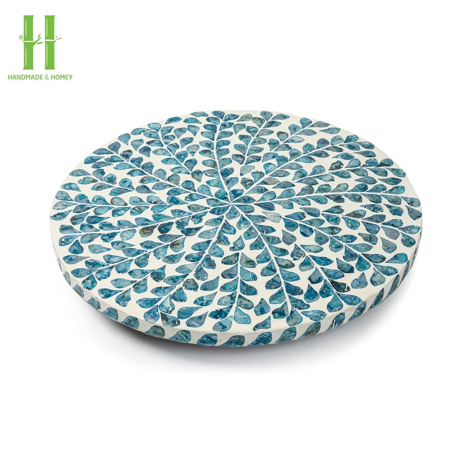 Bandeja Decorativa Giratoria de Bambú Ecológica de Alta Calidad, Estilo Bohemio, Decoración de Mesa con Incrustaciones, OEM/ODM, Hecho a Mano, Artesanía HNH