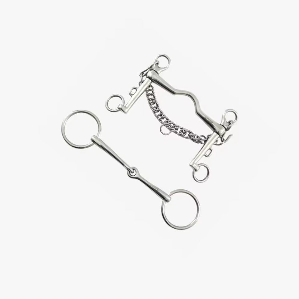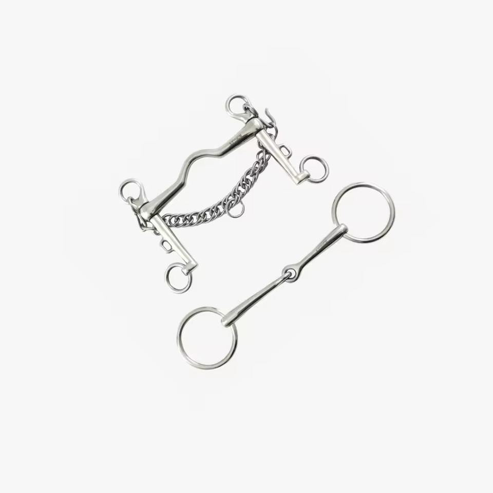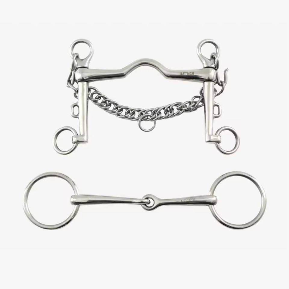 Bocado de alta calidad con revestimiento de goma y articulaciones de acero inoxidable para entrenamiento y control de caballos.