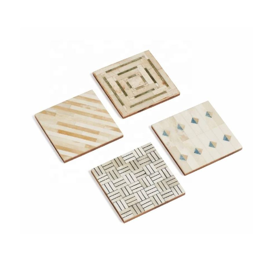 Posavasos cuadrado con incrustaciones de hueso de diseño de alta calidad, Juego de 4 té, café, oficina, bebida, utensilios de cocina, posavasos de comedor, regalo para boda