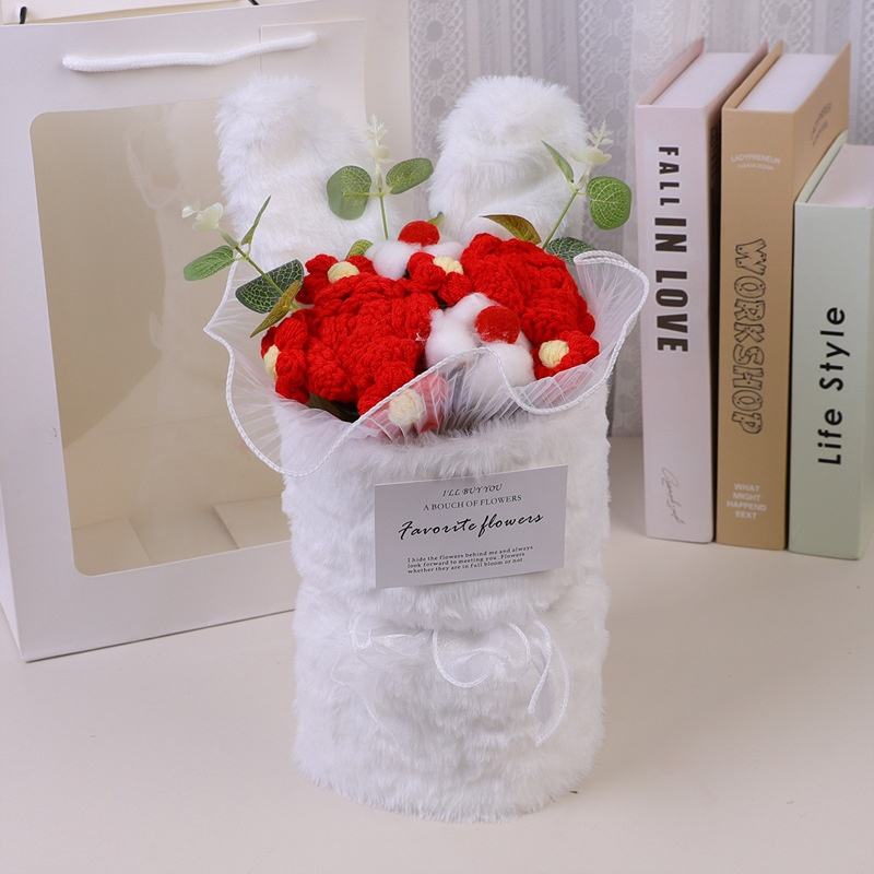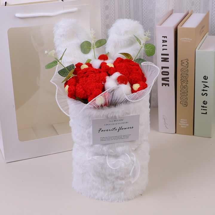 Diseño de alta calidad, flor de ganchillo, decoración de Orejas de conejo para regalos de vacaciones, flores artificiales, conjunto de ramo de flores de ganchillo, regalos