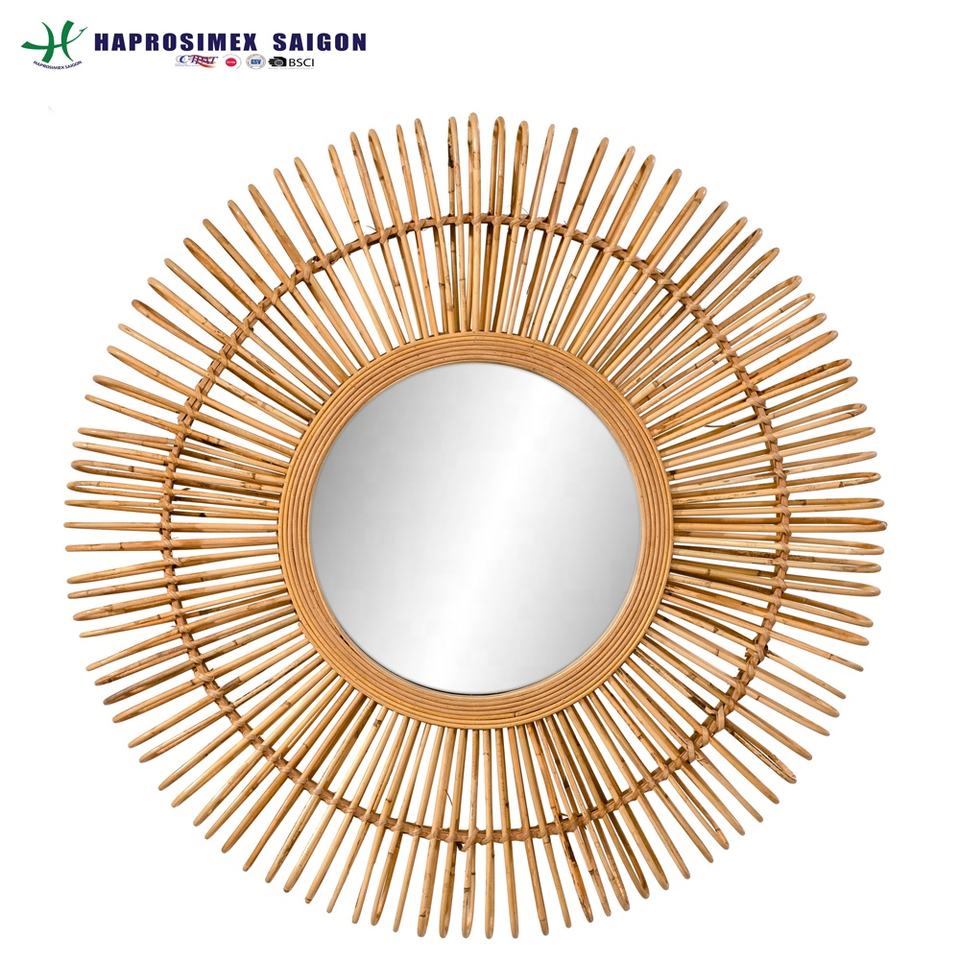 Nombre del producto:, Espejo redondo de ratán, Espejo de pared decorativo