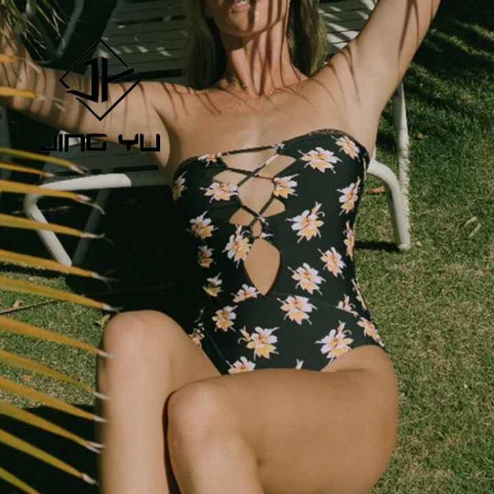 Traje de Baño de una Pieza de Nailon Personalizado con Diseño Hawaiano de Alta Calidad y Tirantes en el Pecho
