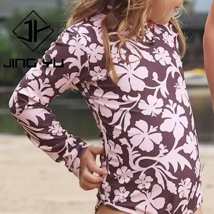 Traje de Baño para Niñas de Alta Calidad con Diseño Hawaiano, Protección Solar, Bikini Personalizado de Poliéster Reciclado