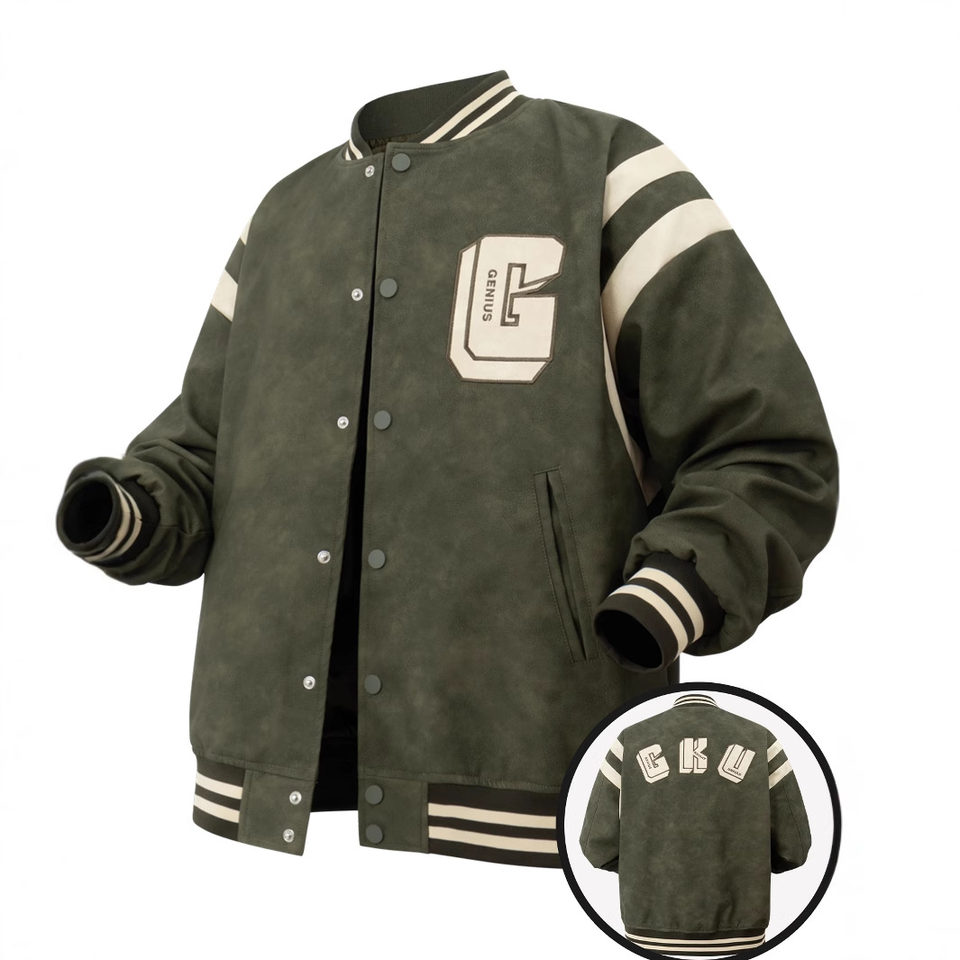 Chaqueta Bomber Varsity Unisex de Alta Calidad con Logotipo Bordado en Chenille, Transpirable, Estilo Urbano, Cuello en V, Mezcla de Algodón