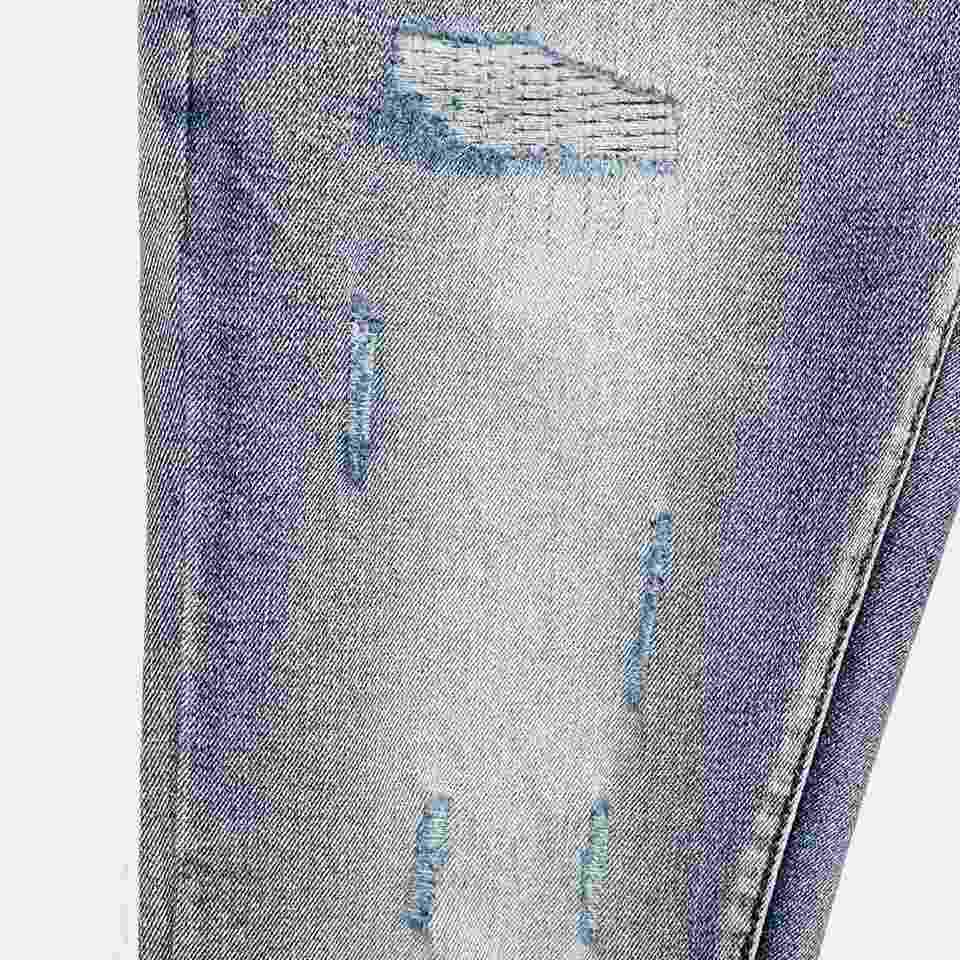 Jeans Azules de Tiro Medio Casuales Rasgados de Marca de Diseñador de Alta Calidad para Hombre, Estilo Apilado