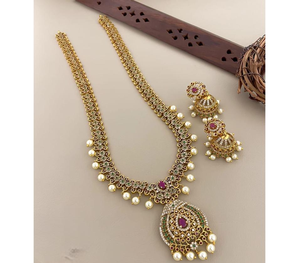 Conjunto de Collar y Aretes de Alta Calidad con Piedras Chapadas en Oro de Diseño, para Bodas, Colección de Uso Tradicional para Mujer