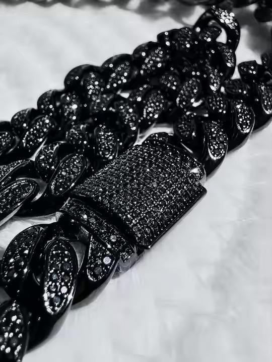 Cadena Cubana de Diamantes de Alta Calidad con Incrustaciones de Piedras Negras, Estilo Hip Hop, para Unisex, de la Marca India