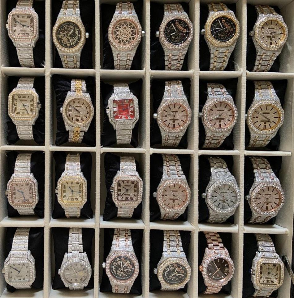 Caja de acero inoxidable con diamantes de alta calidad, movimiento de reloj mecánico, conjunto de reloj de moissanita de lujo para hombres, precio bajo, Exportación a granel