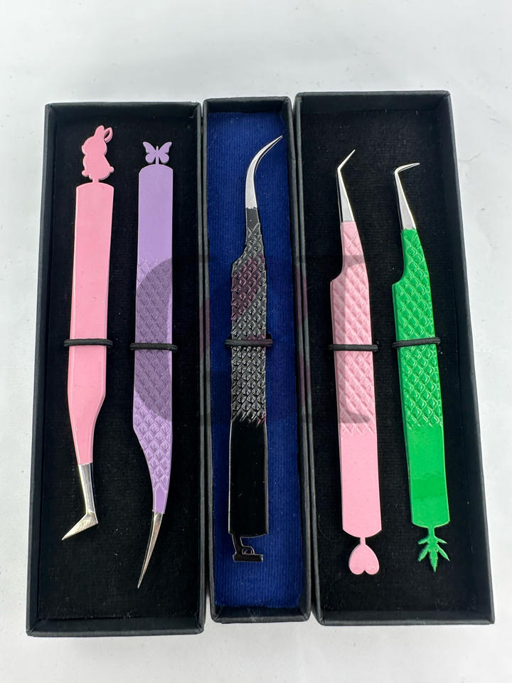 Pinzas de extensión de pestañas de diferentes estilos de alta calidad con diferentes estilos de espalda punta plateada agarre de diamante instrumentos de belleza
