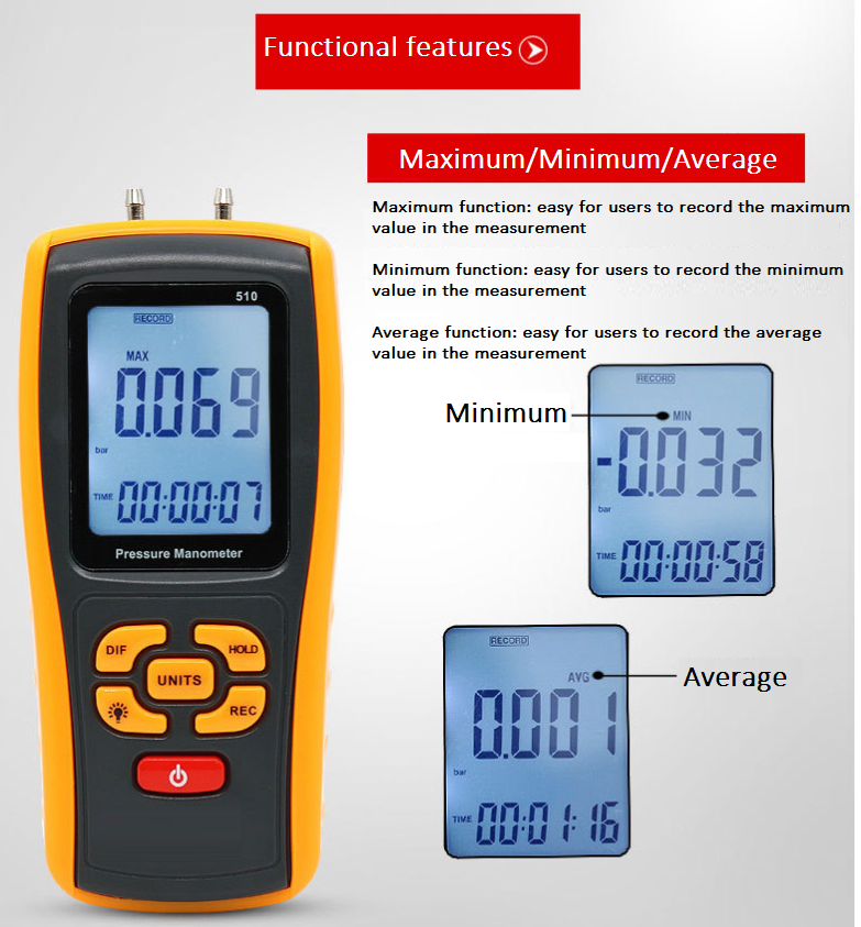 Digital differential air Pressure Manometer for pressure of filter