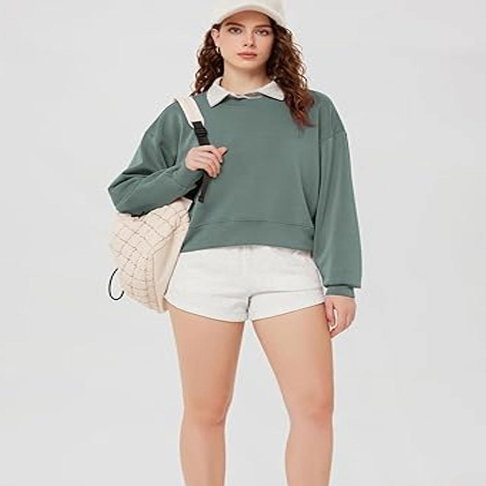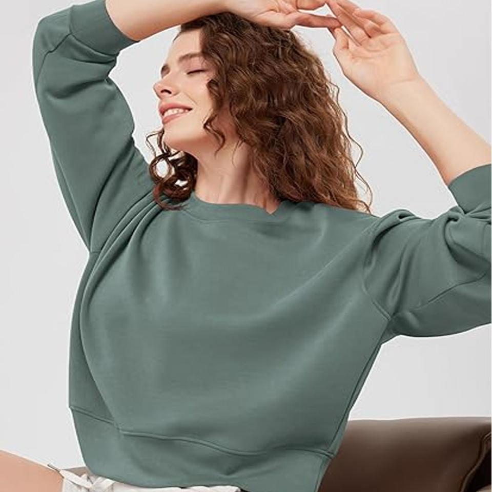 Sudadera de Mujer de Gran Tamaño con Cuello Redondo, de Felpa de Algodón de Color Sólido, Impresión Digital de Alta Calidad, Servicio OEM