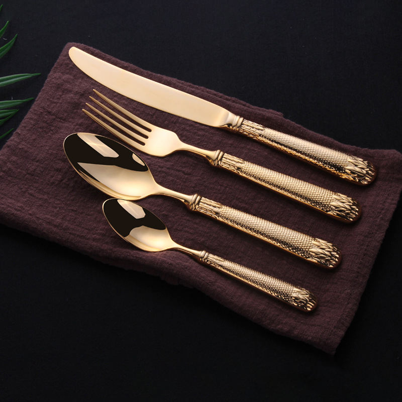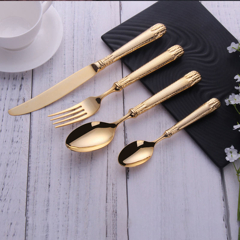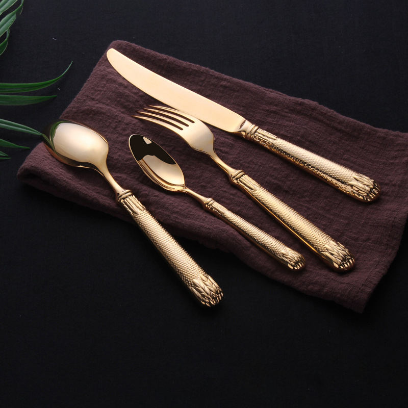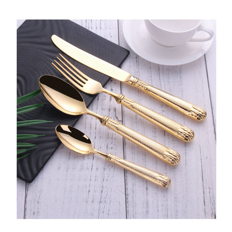 Vajilla de comedor de alta calidad, cuchara de lujo para Hotel, tenedor, cuchillo, cubiertos, cubiertos de acero inoxidable, juego de cubiertos dorados para boda