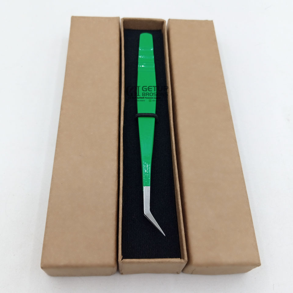 Pinzas de extensión de pestañas estilo Delfín de alta calidad logotipo personalizado Acero inoxidable 45 grados apio recubrimiento en polvo herramienta de belleza