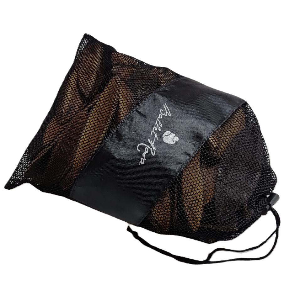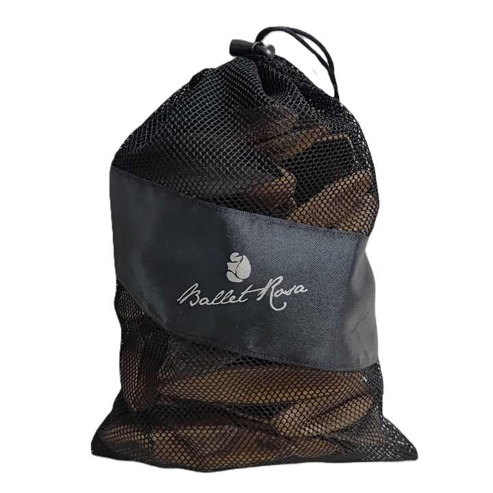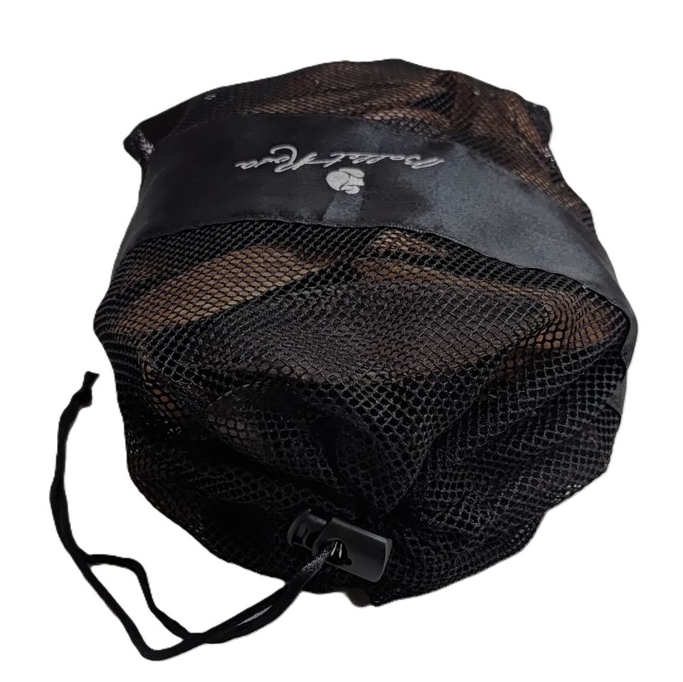 Bolsa de malla con cordón de alta calidad y logotipo plateado en cinta de satén de 7.5 cm para el empaquetado de prendas de vestir de primera calidad.