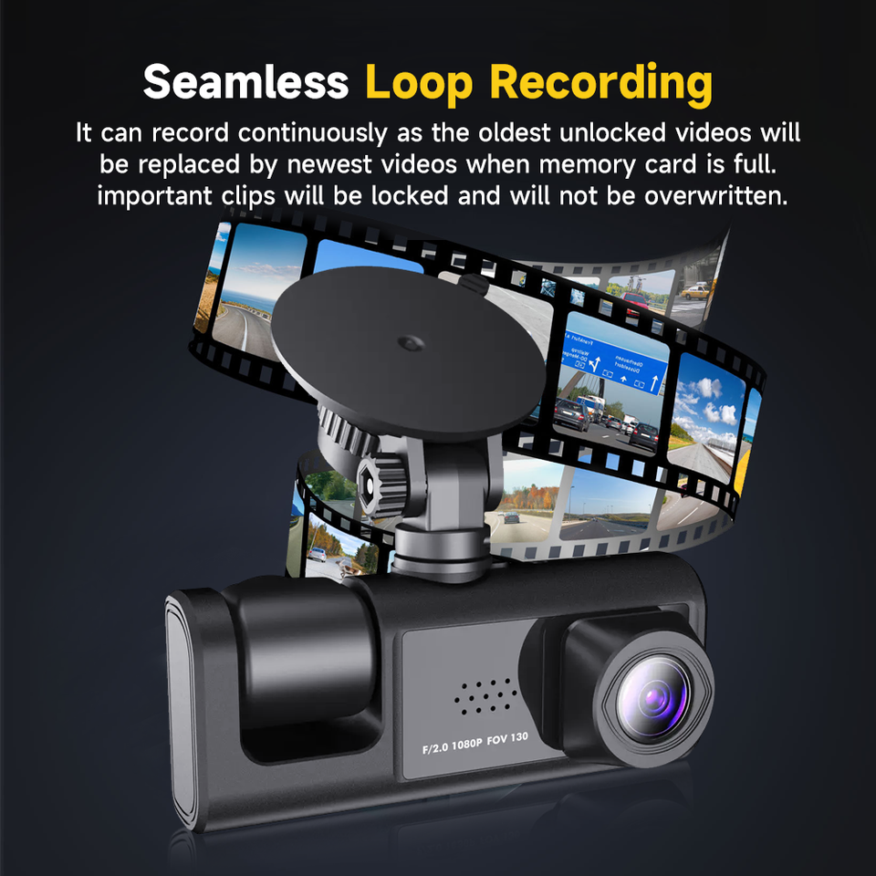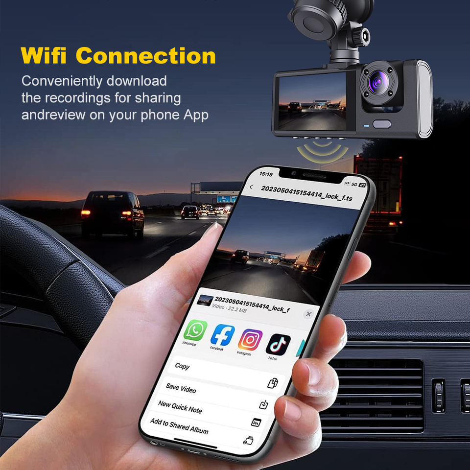 Cámara de Coche HD de Alta Calidad con Grabación de 3 Canales, GPS, Visión Trasera y Wifi