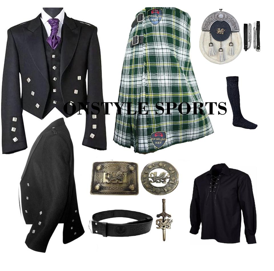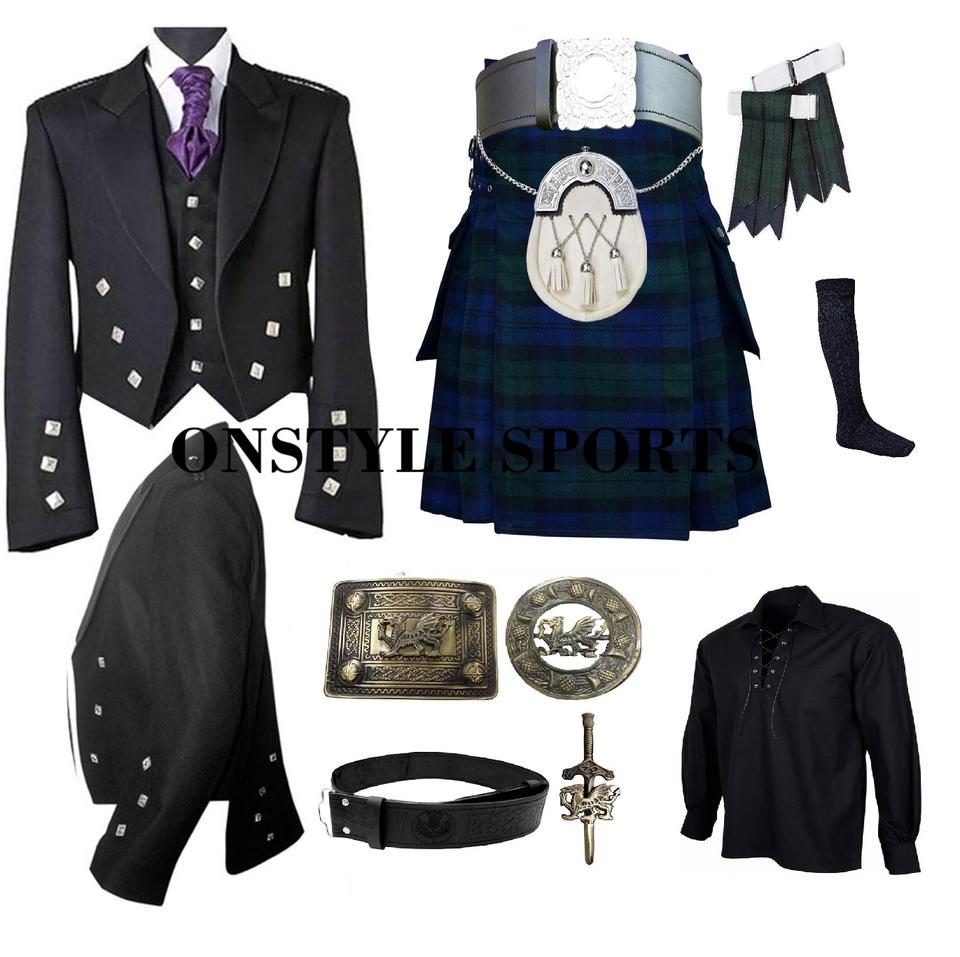 Conjunto de Kilt Escocés de Alta Calidad y Durabilidad para Hombre, Lana Acrílica, Color y Talla Personalizables, Instrumento Musical Tradicional de las Tierras Altas Escocesas