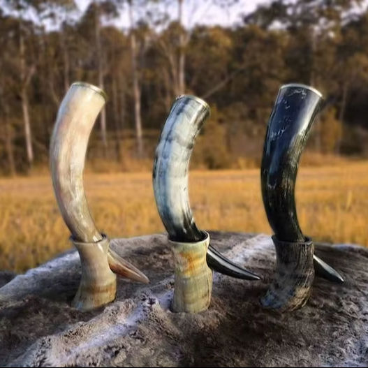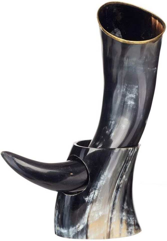 Cuerno Vikingo Valhalla de Alta Calidad y Duradero, Hecho a Mano, de 15 Pulgadas, con Soporte para Cerveza y Cerveza Alemana, Pulido a Mano Original