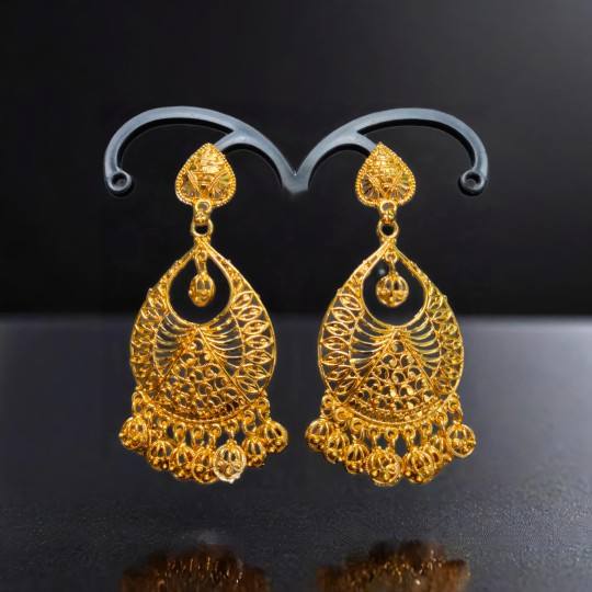 Juego de pendientes de alta calidad con pendientes de estilo Jhumka chapados en oro de 22 quilates, joyería para mujer, ropa de exportadores indios