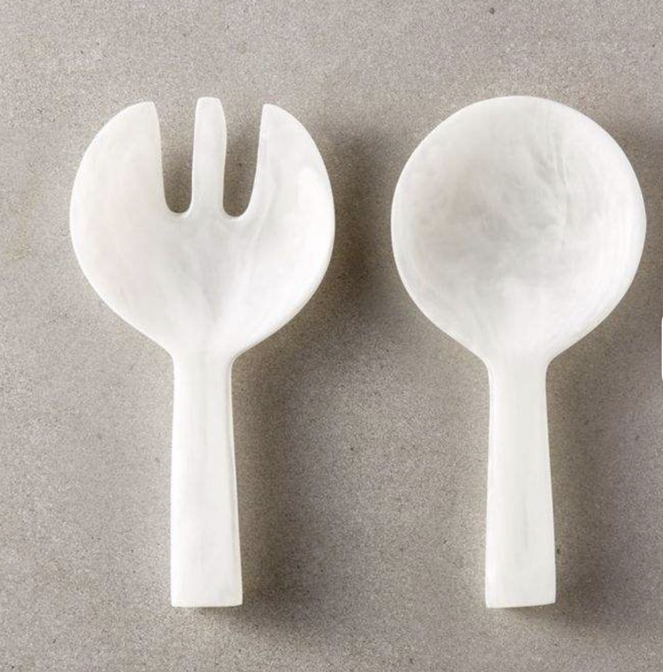 Juego de Cubiertos para Ensalada de 4 Piezas de Alta Calidad y Ecológico, Resina Azul Mate Brillante, Mango Largo, Diseño Moderno, Cuchara para Cena, Fiesta-Cocina