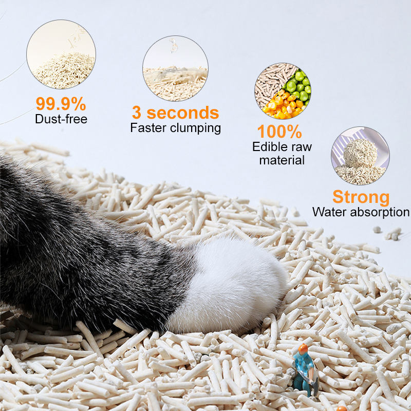 altamente adsorbente, control de olores, Flushable, baja contaminación por polvo, Respetuoso del medio ambiente, Libre de polvo, aglomerante rápido, Biodegradable, Control adicional del olorCaracterística
