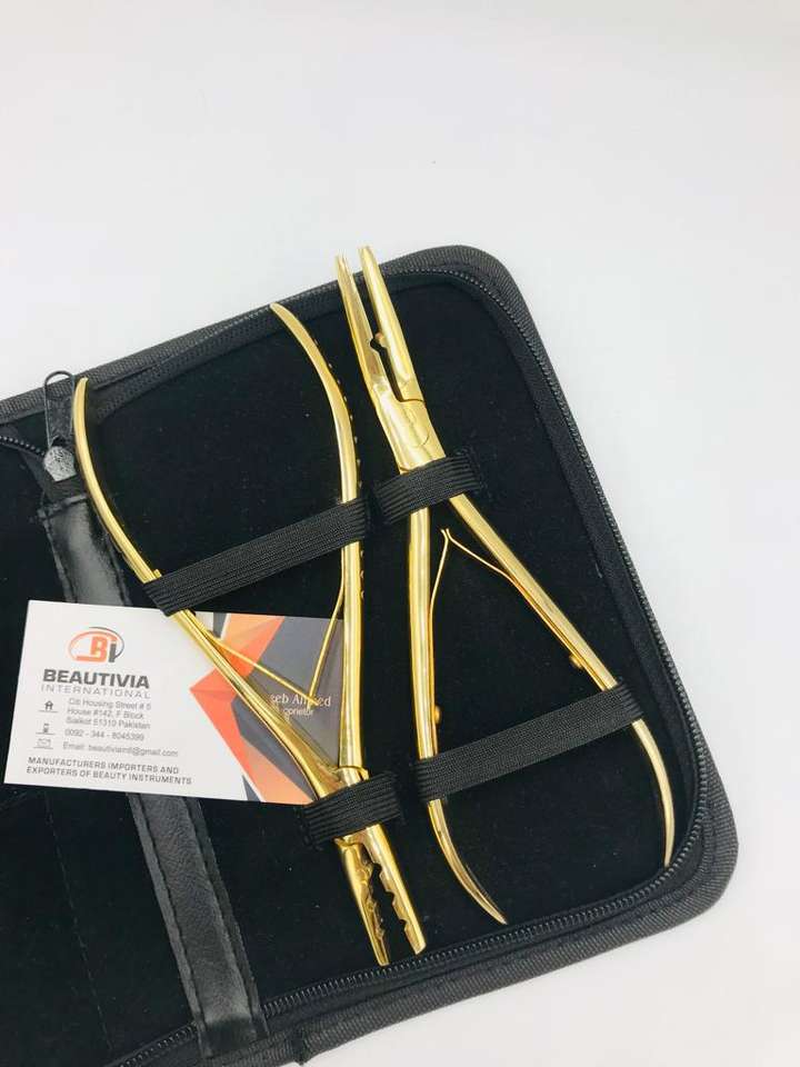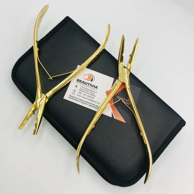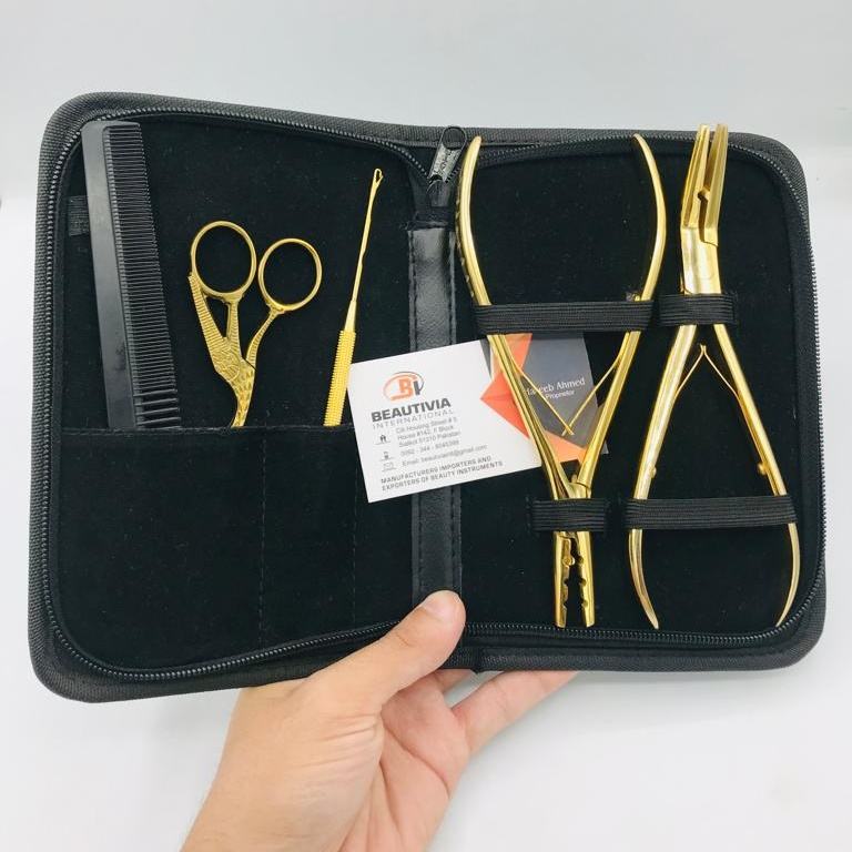 Kit de Herramientas para Extensiones de Cabello al por Mayor, Alicates de Acero Inoxidable de Grado Quirúrgico, Ecológicos, Profesionales y de Alta Calidad, Chapados en Oro