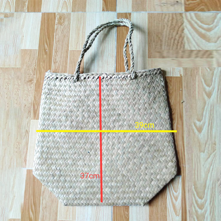 Vestido de patrón geométrico hecho a mano ecológico de alta calidad, bolso de paja de uso diario de Vietnam, bolsos de cierre abierto con dos asas