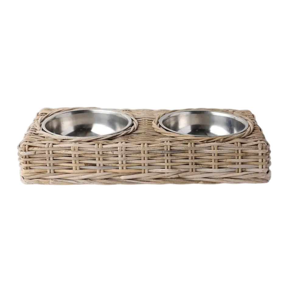 Nombre del producto:Ratán doble Pet Bowl Holder + Inox Bowl Feeder