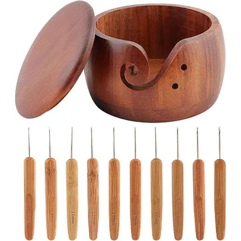 OEM original ecológico de alta calidad acepta accesorios de tejer cuenco de hilo de madera de bambú sin tapa con ganchos