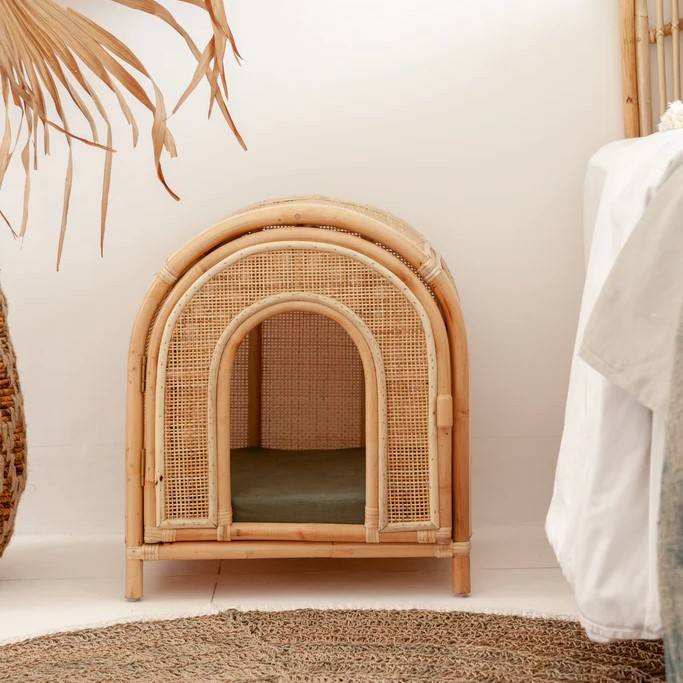 Cama para mascotas de mimbre ecológico de alta calidad, casa rústica elegante para mascotas hecha en Vietnam