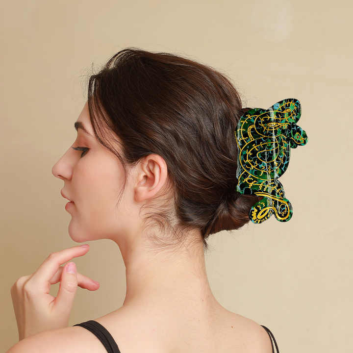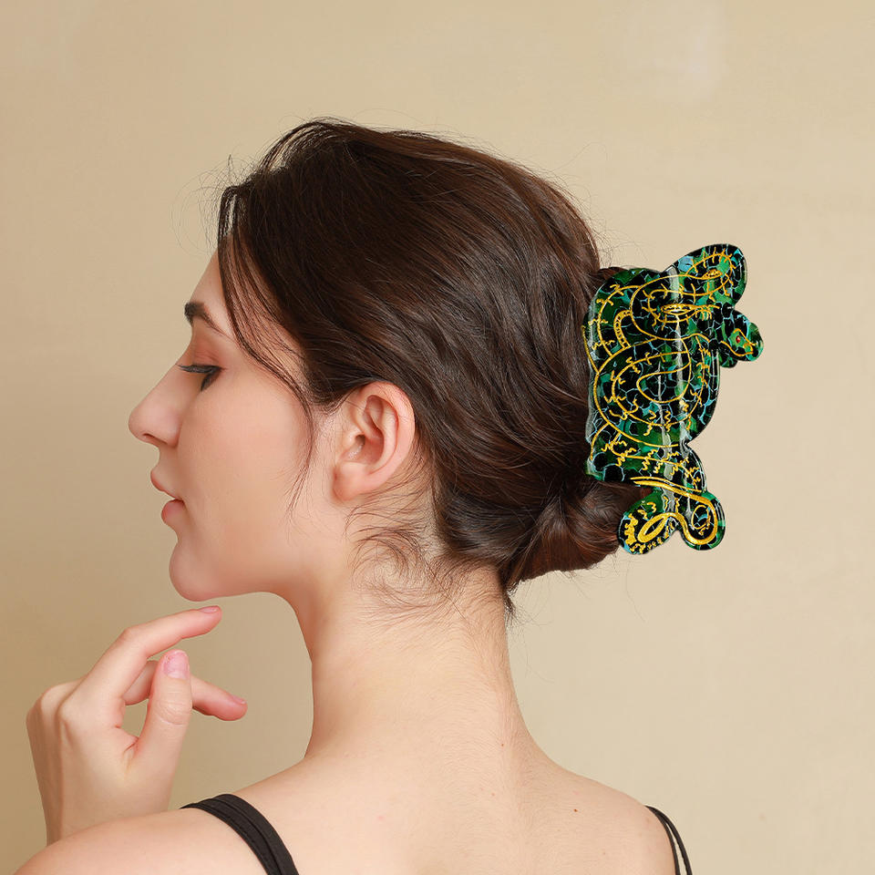 Accesorios elegantes para el cabello de alta calidad hechos a mano negro verde Mamba serpientes Cool Shark Claw Clips elegante personalidad tendencia cabello