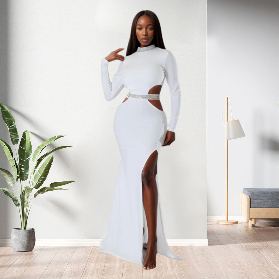 Vestido de Noche Elegante de Alta Calidad con Aberturas y Pedrería, Ajustado al Cuerpo, para Mujer