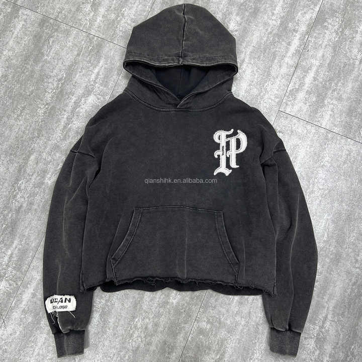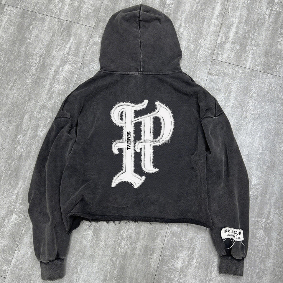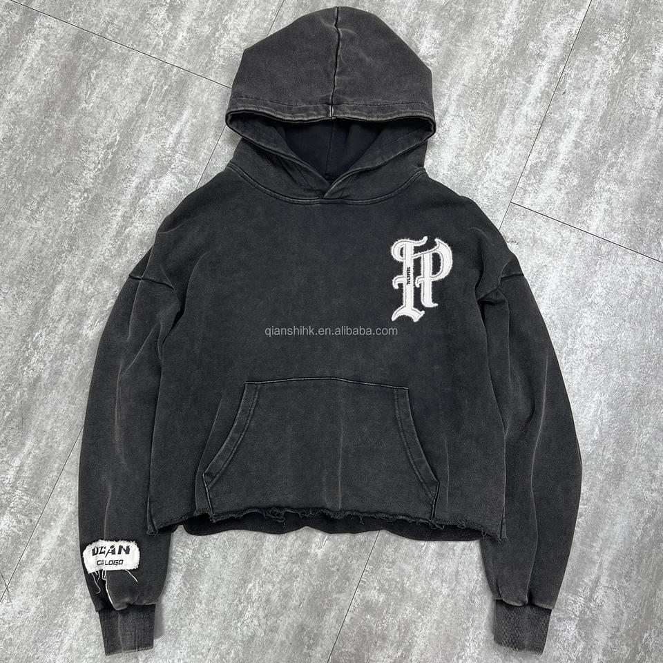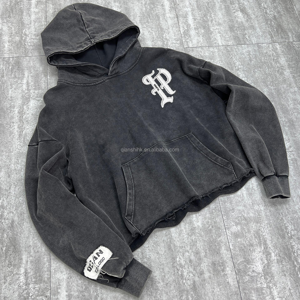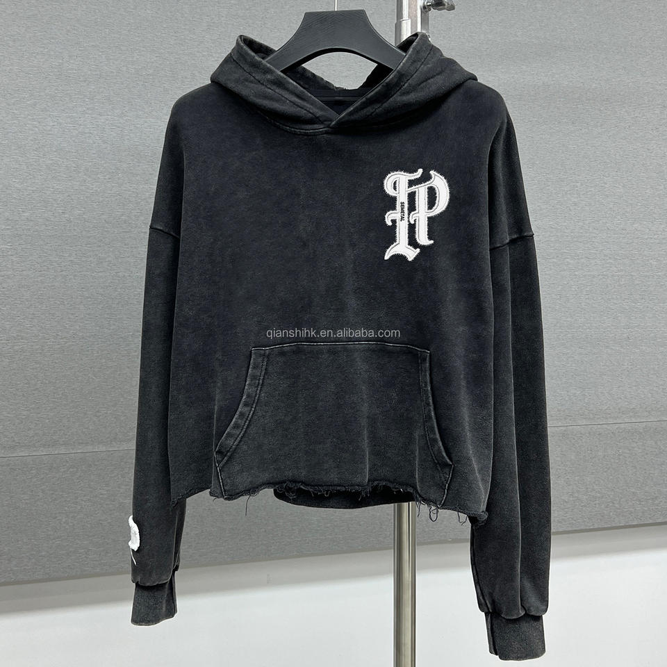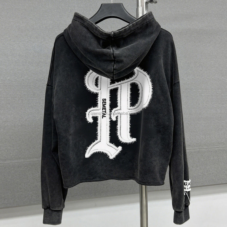Sudaderas con capucha con logotipo bordado de alta calidad, ropa de calle personalizada, Sudadera con capucha con hombros caídos de primavera, sudadera de gran tamaño con lavado ácido desgastado