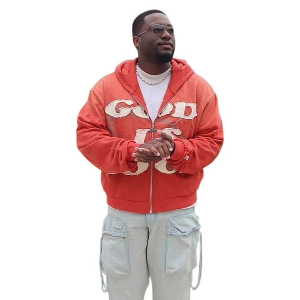 Sudadera con Capucha de Alta Calidad, Bordado Sólido, Cierre Completo, Estilo Urbano, Felpa de Algodón Premium, Cómoda, Cálida, Informal, Moderna