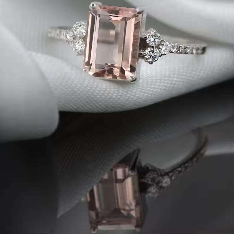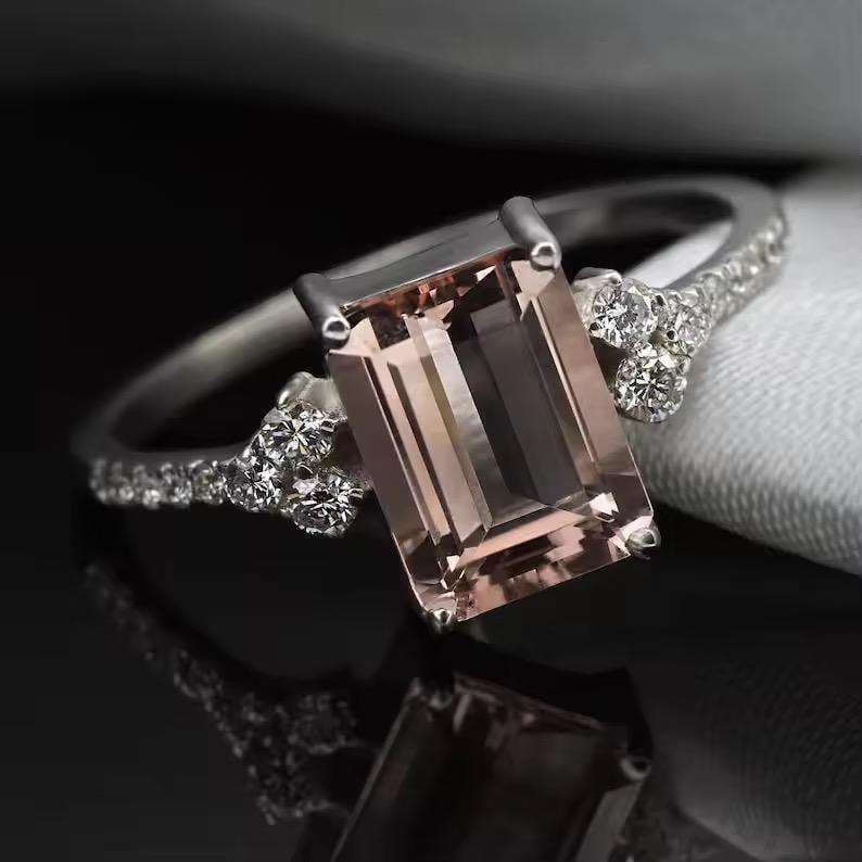 Anillo de diamante de moissanita de morganita de Rosa del desierto de corte esmeralda de alta calidad joyería de moda para regalo o fiesta disponible para la venta
