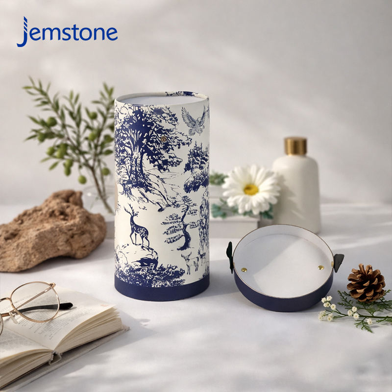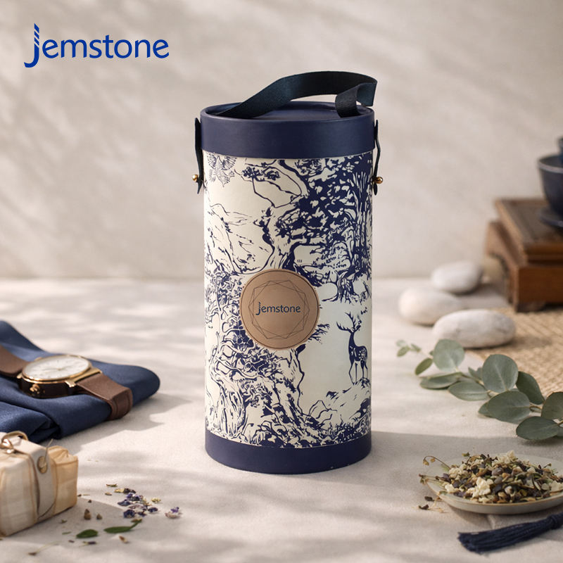 Caja de Embalaje de Cartón para Dulces de Cuero Vacía de Alta Calidad con Interior de Satén, Asa y Tubo de Papel Cilíndrico para Té Suelto