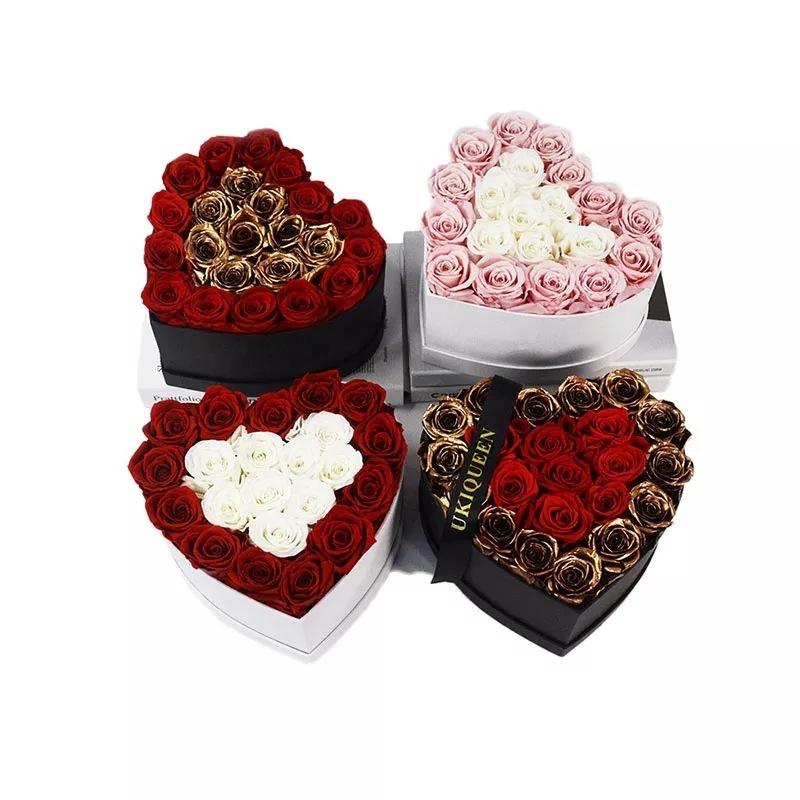 Rosas inmortales eternas de alta calidad, cabeza de flor, rosas reales conservadas en caja de corazón para Navidad, cumpleaños del Día de San Valentín
