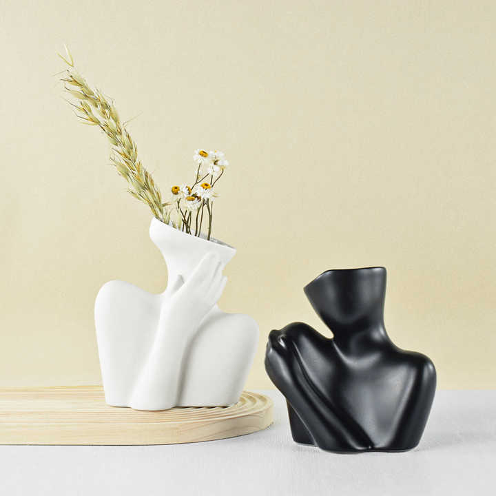 Jarrón de cerámica creativo de arte corporal humano nórdico europeo de alta calidad, jarrón de flores ornamentales bohemias modernas para sala de estar