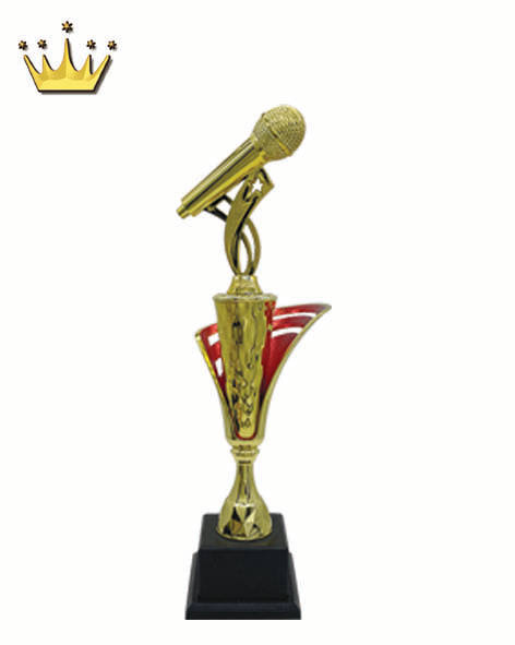 Trofeo de plástico temático con micrófono Rojo Dorado exclusivo de alta calidad Nuevo premio de larga duración para concursos de canto Amor de dibujos animados