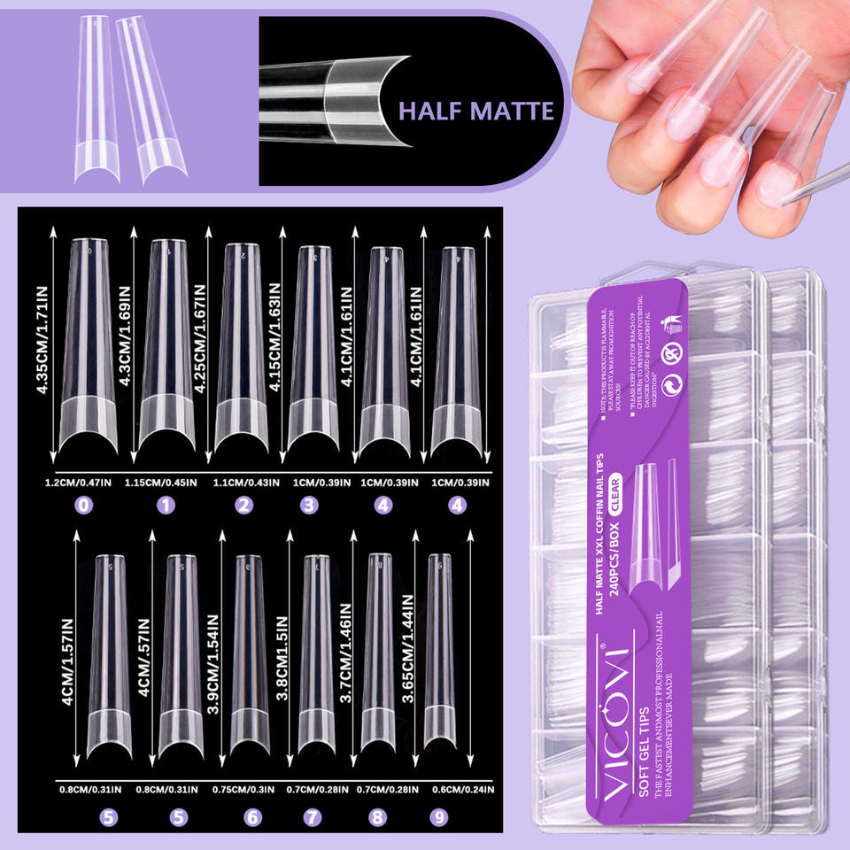 Puntas de uñas de cobertura completa de vaquero Extra largo de alta calidad Prensa natural transparente en uñas Puntas de uñas postizas en forma de T
