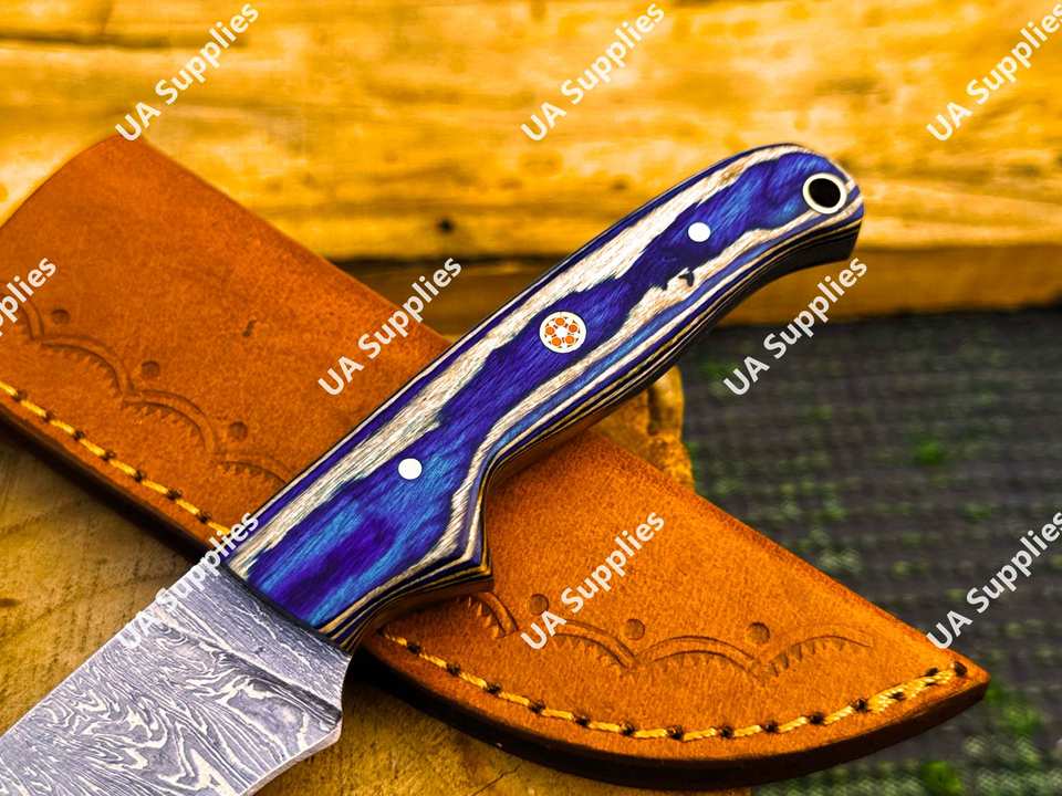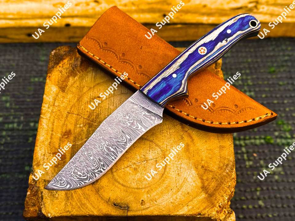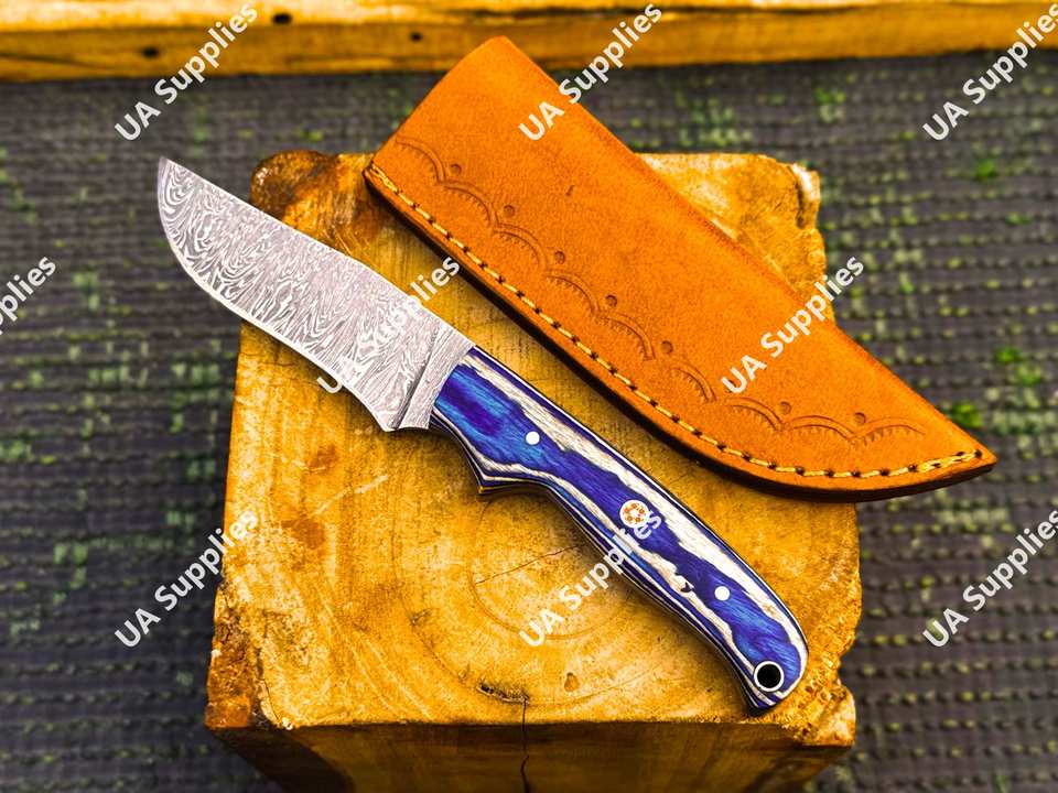 Cuchillo Skinner de hoja fija de Damasco hecho a mano