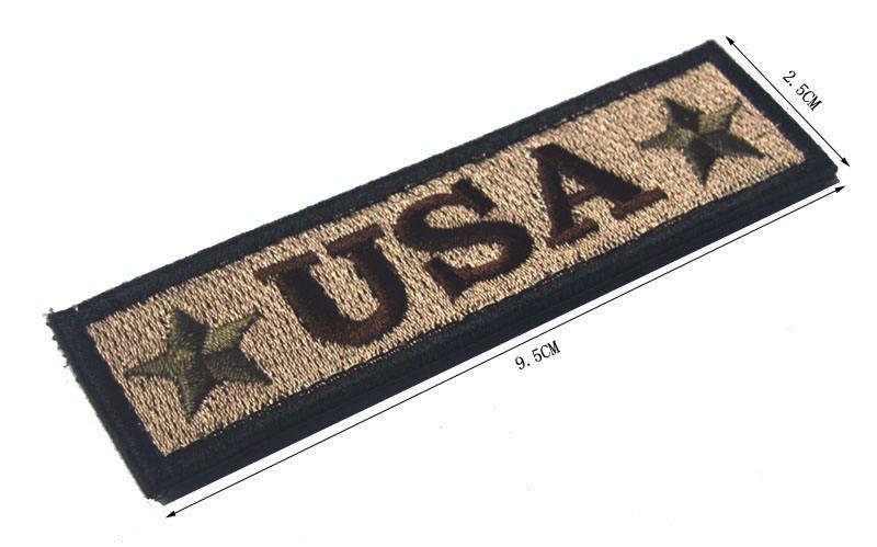 Fábrica de alta calidad bordado país letra insignia EE. UU. tela negra EE. UU. uniforme hombro ropa etiqueta apliques parche chaqueta