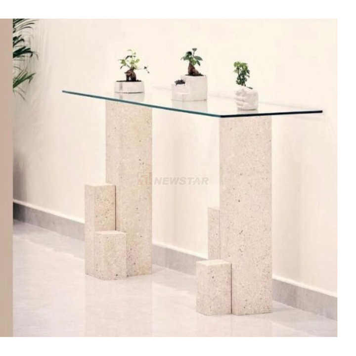 Alta calidad, precio de fábrica, mesas de consola de lujo, entrada templada de vidrio, muebles de piedra antigua, mesa de centro al por mayor
