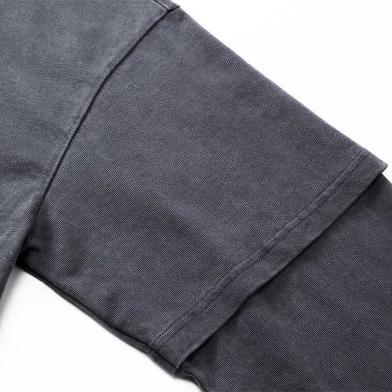 Camiseta de doble capa de manga larga con cuello redondo lavado desteñido de alta calidad para hombre