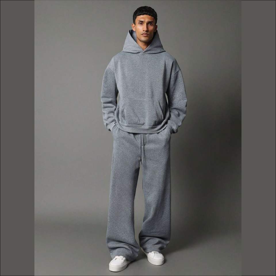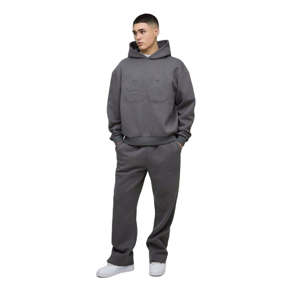 Conjunto Deportivo de Otoño/Invierno de Alta Calidad, Diseño Personalizado, Pantalón Holgado y Sudadera con Capucha, Poliéster/Algodón, Estampado Gris Carbón, Casual