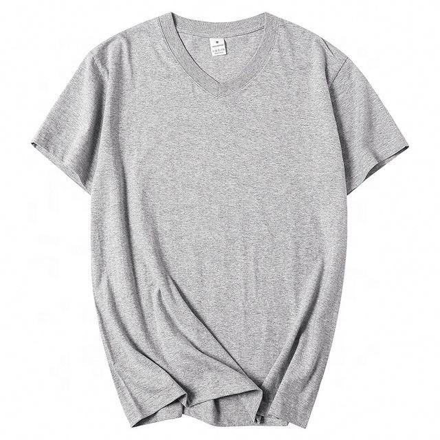 Moda de alta calidad 100% algodón sólido en blanco liso 210 Gsm Camiseta con cuello en V para hombres