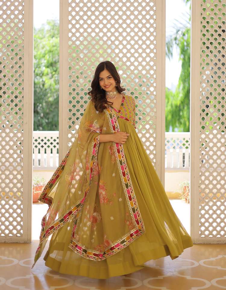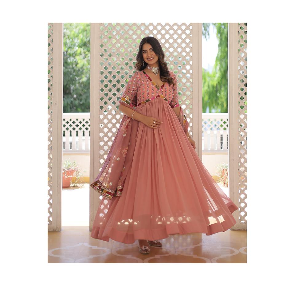 Alta calidad Faux Georgette bordado Zari lentejuelas trabajo Alia corte vestido perfecto para novia y ocasión especial desgaste