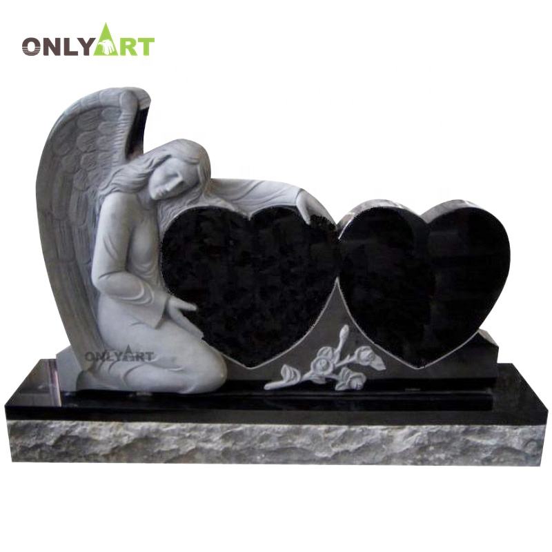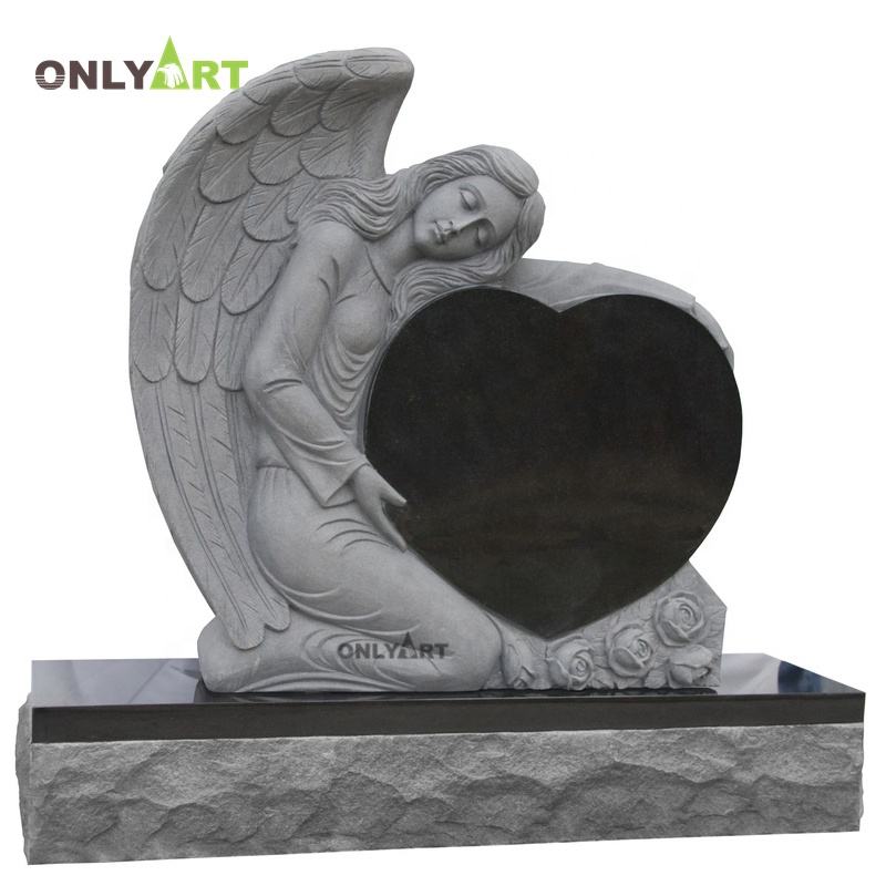 Estatua de Ángel Femenina de Mármol de Alta Calidad con Lápida en Forma de Corazón Negro