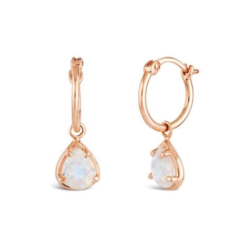 Pendientes de aro de piedra lunar con forma de pera chapada en oro de 18K S925, joyería elegante de alta calidad al por mayor de fábrica fina
